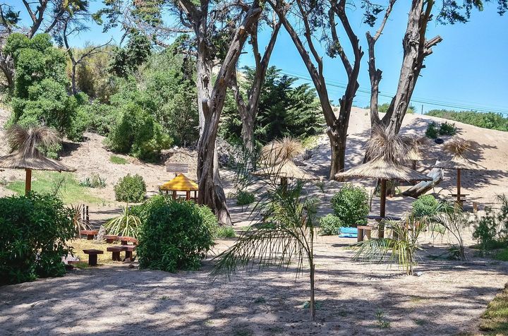 Amplio parque al pie del médano con juegos infantiles, fogón e invernadero.